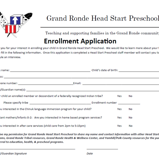 Grand Ronde Head Start Preschool's mission is to make a difference in the lives of children and families, while also providing a safe and inclusive preschool education. The Early Childhood Education's goal is to lay the foundation for lifelong success, partner with families to create opportunities and celebrate the community as well as the culture.